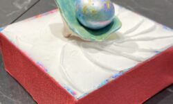 紙粘土のオブジェ、期待して待ちますあしたの玉子、何が産まれるやら考える楽しみ❣️会場で発表