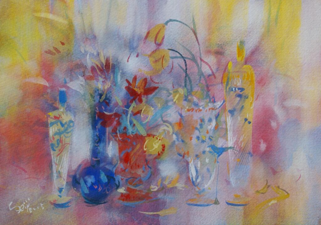 私は、作品制作時に色にこだわっています。只、色を頭で考えているだけで実際に使って気持ちが落ち着く色は日常見る色に落ち着いてしまいました。色を使いこなせるようにならなければいけないと思い、スペインに出かけました。黄色とオレンジ色を使わないとスペインの雰囲気の風景にならない、いつも日本の色青、紫、緑に落ち着いてしまっていましたが、黄色とオレンジ色が使える、色の幅がチョット増えた瞬間でした。外部の刺激も受けなくてはと考える様になりました。