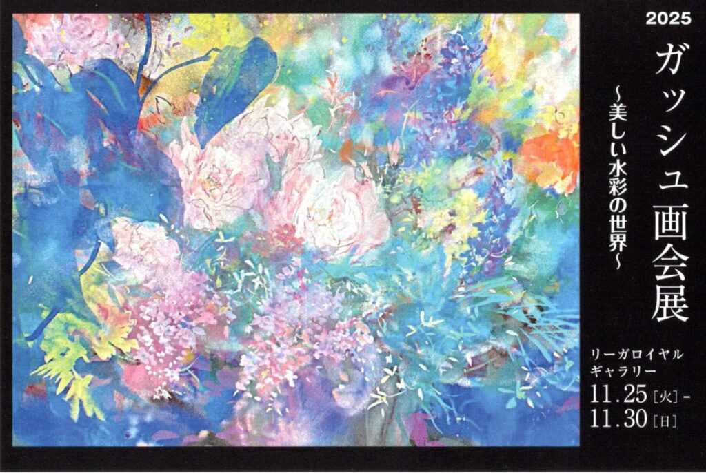 2025年は11月25日(火)~11月30日(日)の6日間、午前10時~午後6時、毎年開催しているガッシュ画を受講されている大阪・千葉・名古屋・神戸生徒さんの作品展です。